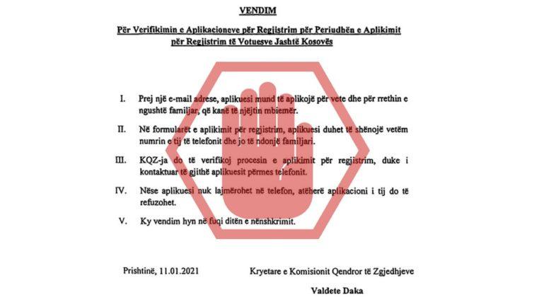Ne vazhdojmë të konsiderojmë se vendimi i KQZ nr. 42-2021 i datës 11.01.2021 cënon të drejtat kushtetuese dhe ligjore, çka po vërtetohet edhe në procesin e verifikimit të aplikuesve për votim nga jashtë përmes telefonit, ku janë raportuar raste të largimit nga lista e votuesve për shkak të mosqasshmërisë në telefon.